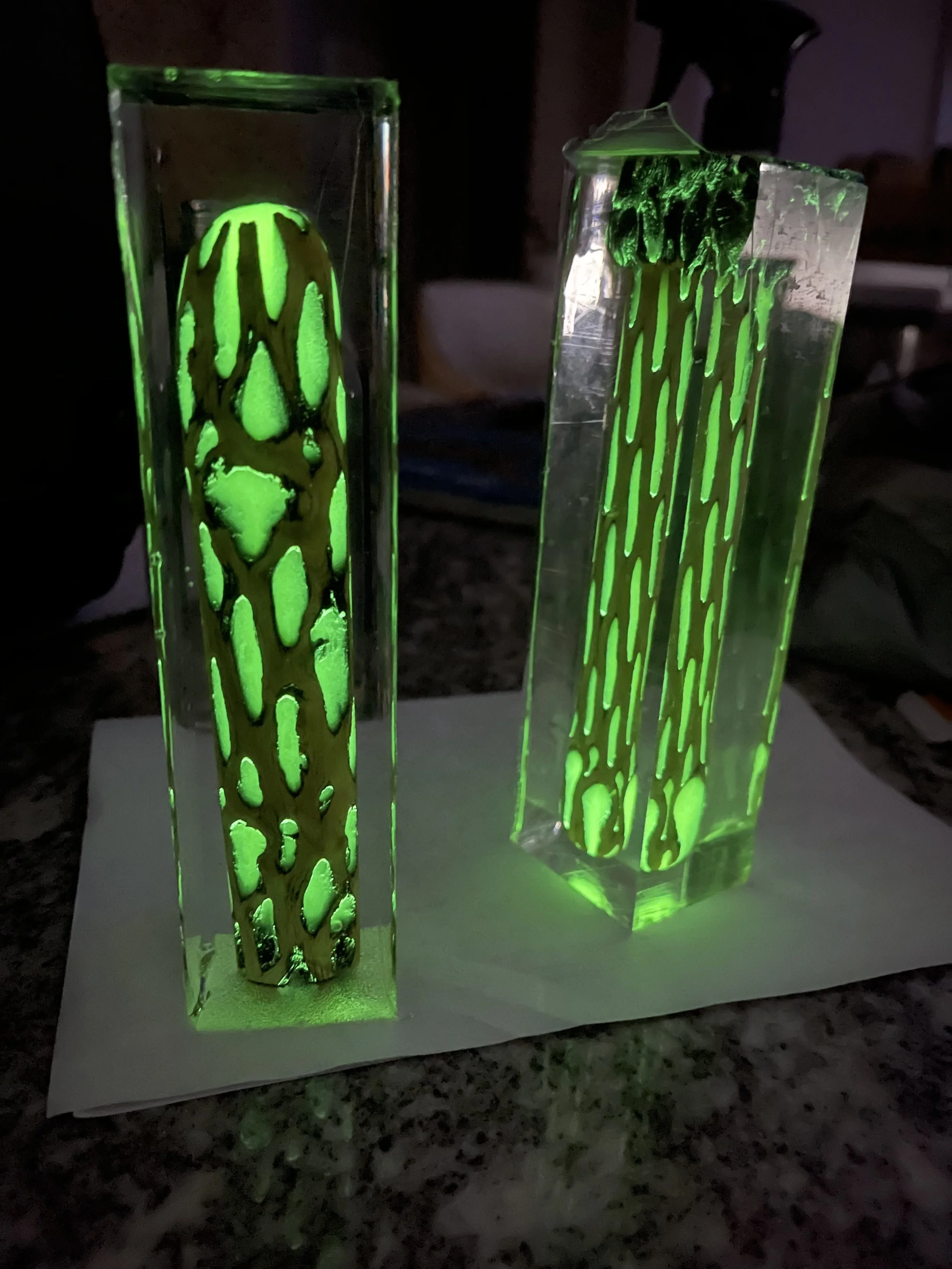 Deep glow resin cast (UV and long-charge phosphorescent blend)
